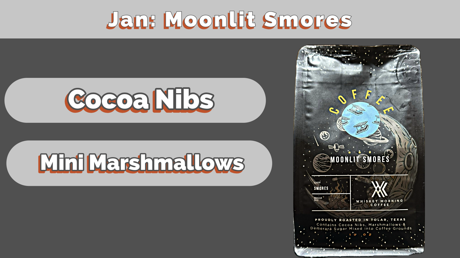 The Coffee of the month only comes ground because we grind real ingredients into the coffee grounds.