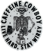1X Caffeine Cowboy Sticker (3in, clear background)