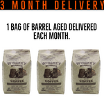 Prepay and get free shipping on your Barrel Aged Coffee. One bag will be delivered every month for 3 months. You will be charged upfront for 3 shipments. There is not an auto renew. After the initial purchase you will not be charged again.